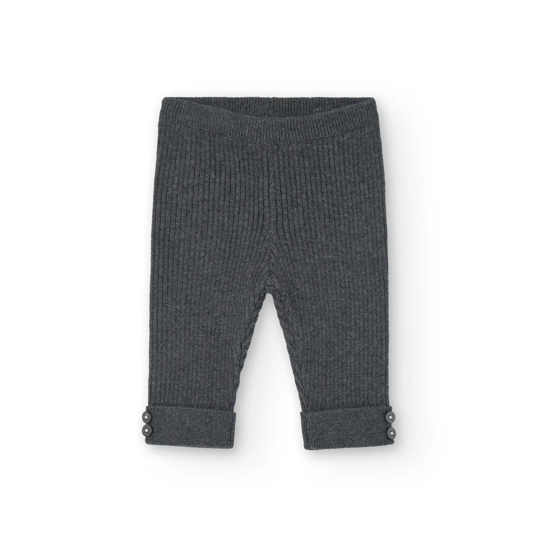 Completo neonata maglietta manica lunga di peso medio, non è felpata, ma è caldo cotone. Con leggings a coste grigio scuro. Maglione:98%cotone 2%elastan Pantaloni:48%cotone 37%poliestere 12%poliammide 3%lana