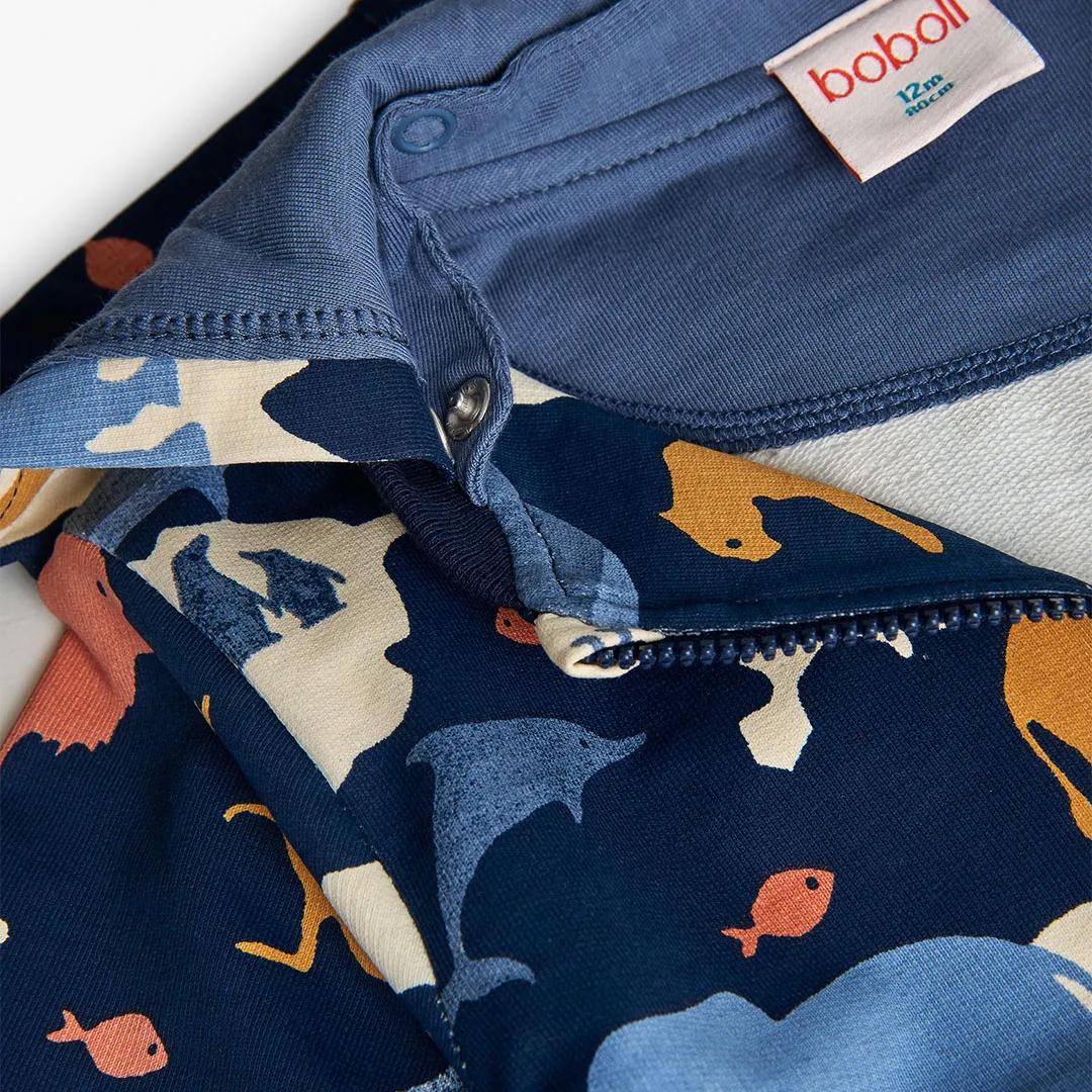 Felpa calda con cerniera e cappuccio staccabile. Tasche interne ed elastici sulla vita e sui polsi. Taglie disponibili dai 2 ai 10 anni.