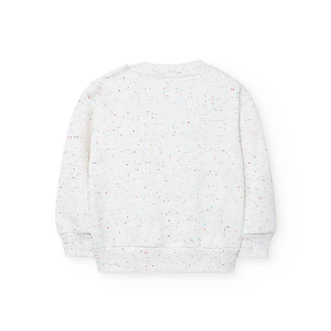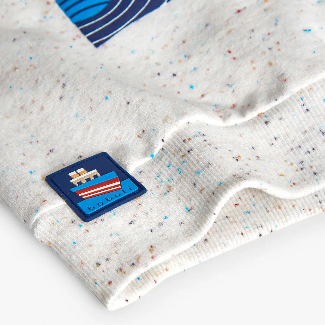 Felpa girocollo bambino mélange con stampa di un faro in burrasca. Perchè il mare si evoca anche d’inverno quando mostra tutta la sua forte. Disponibile dai 2 ai 10 anni.