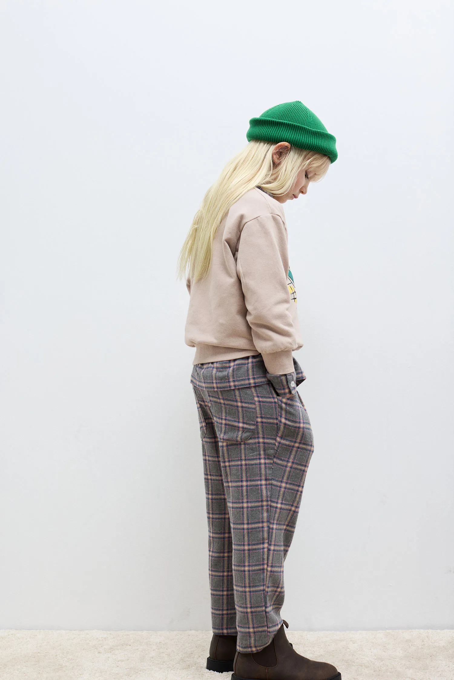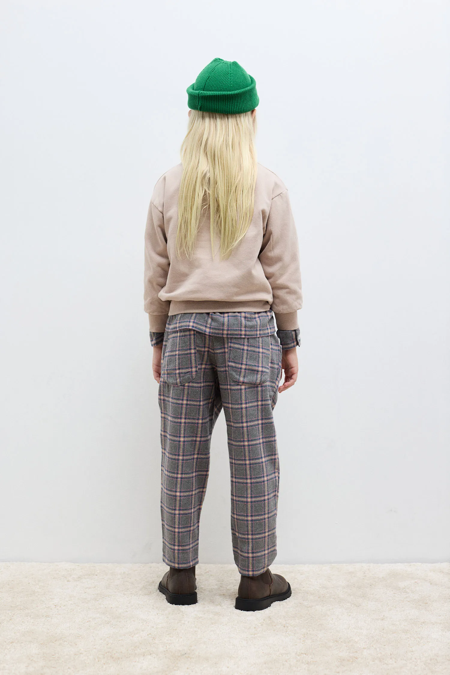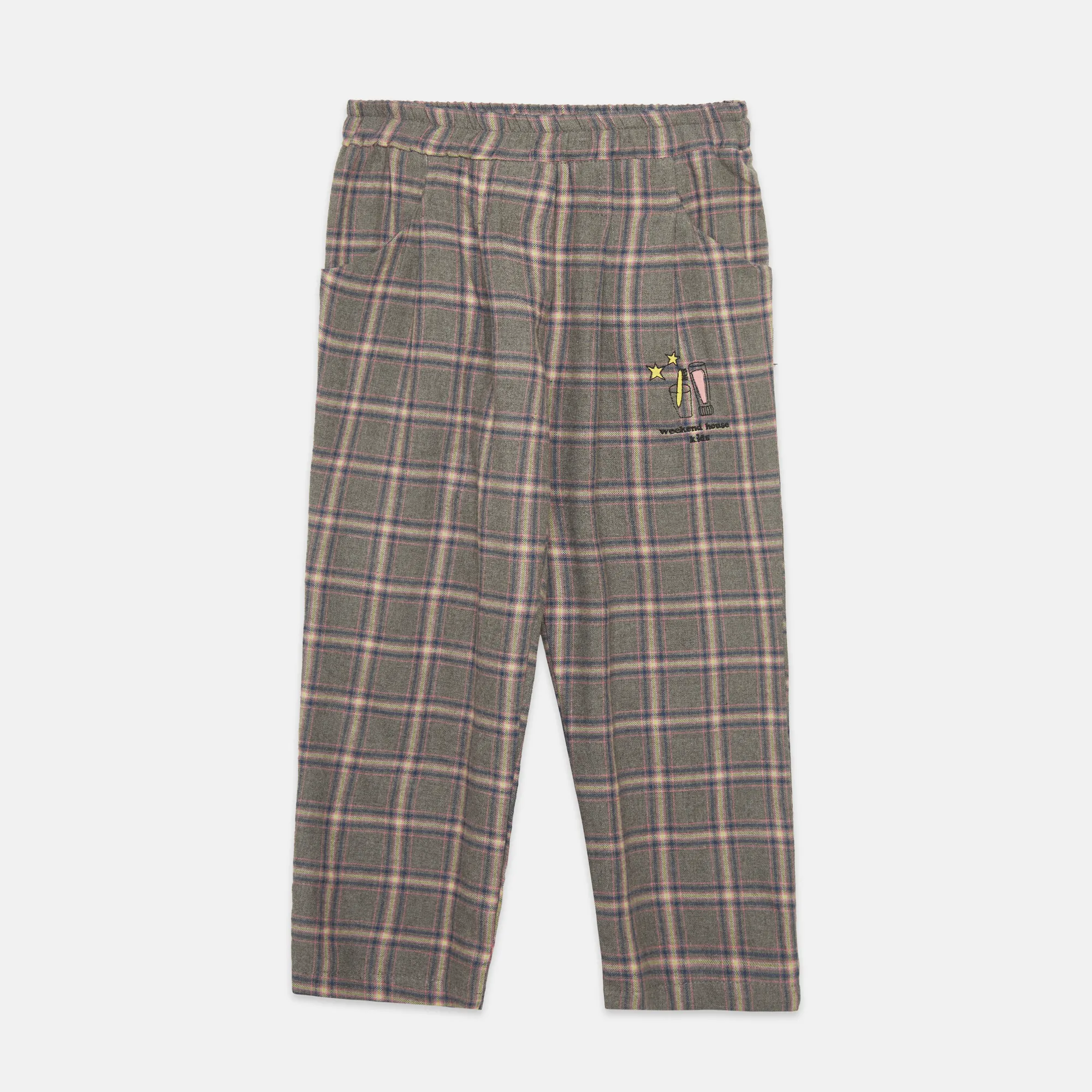 Pantalone dalla linea a carota 100% cotone con una trama tartan con il rosa sarà il vostro preferito.